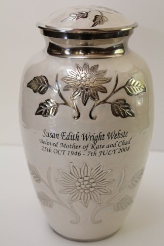 OrderNow ADULT WHITE AND NICKLE FUNERAL CREMATION URN W/FREE KEEPSAKE